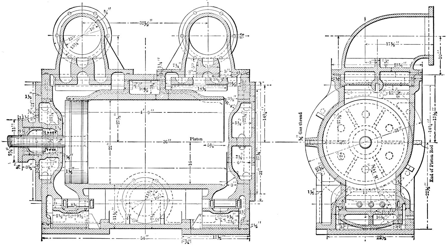 Mr. Bishop replied to me: “It does project, Mr. Porter; it projects seven eighths of an inch over the port at each end of its stroke, for I have measured it.” I rushed up to the drawing-office and called for the horizontal sectional drawing of that cylinder, and there I saw the piston not only drawn, but figured—projecting seven eighths of an inch over the port. I felt as though I were sinking through the floor. That was what had ruined my Boston exhibition and sent me home disgraced and broken-hearted and the badly fitting piston, shameful as that was, had nothing to do with it. The first question that occurred to me was: “How came this drawing to exist and I to know nothing about it?” The answer to this question was simple.