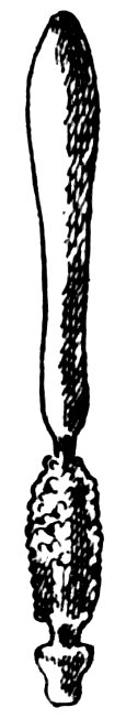 Scape.—Low, from a solid bulb. Leaves.—Two, ovate, smooth. Flowers.—Purplish or greenish, with thread-like reflexed petals and a large brown-purplish lip an inch and a half long; growing in a raceme.
