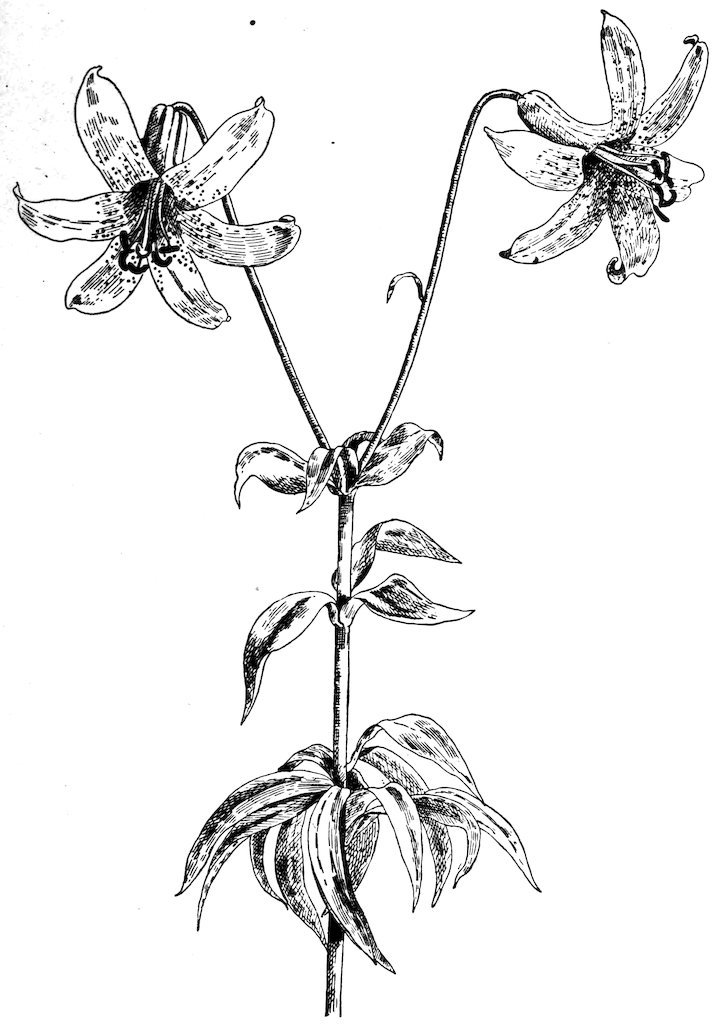 Ninety-seven of the one hundred and four plates in this book are from original drawings from nature. Of the remaining seven plates, six (Nos. LXXX., XCIX., CI., XXII., XLII., LXXXI.), and the illustration of the complete flower, in the Explanation of Terms, are adapted with alterations from standard authors, part of the work in the first three plates mentioned being original. Plate IV. has been adapted from “American Medicinal Plants,” by kind permission of the author, Dr. C. F. Millspaugh. The reader should always consult the “Flower Descriptions” in order to learn the actual dimensions of the different plants, as it has not always been possible to preserve their relative sizes in the illustrations. The aim in the drawings has been to help the reader to identify the flowers described in the text, and to this end they are presented as simply as possible, with no attempt at artistic arrangement or grouping.