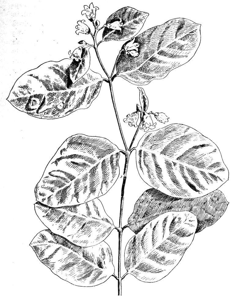 Stem.—Twining and climbing over bushes. Leaves.—Divided into three to seven narrowly oval leaflets. Flowers.—Papilionaceous, purplish or chocolate-color, somewhat violet-scented, closely clustered in racemes.