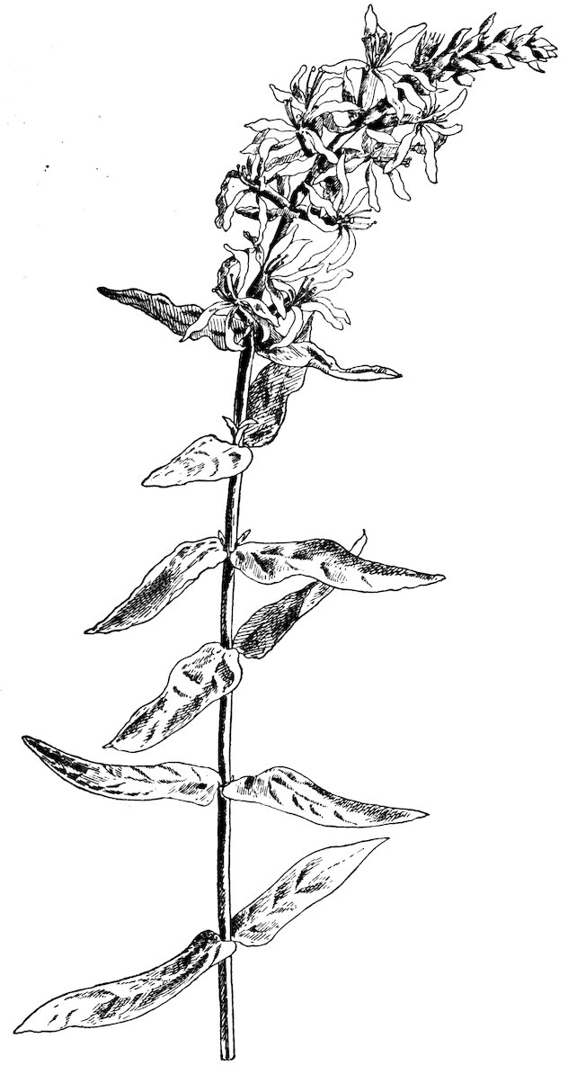 Stem.—Simple, stout, hoary, two to five feet high. Leaves.—Alternate, narrowly lance-shaped. Flower-heads.—Racemed along the upper part of the stem, composed entirely of tubular flowers of a beautiful shade of rose-purple.