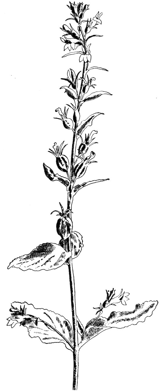 Stem.—One to two feet high, upright, smooth. Leaves.—Opposite, narrowly oval or lance-shaped. Flowers.—Blue to purple, clustered at the summit of the stem and often in the axils of the leaves. Calyx.—Four or five-cleft. Corolla.—Closed at the mouth, large, oblong. Stamens.—Four or five. Pistil.—One, with two stigmas.