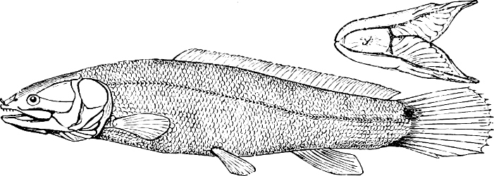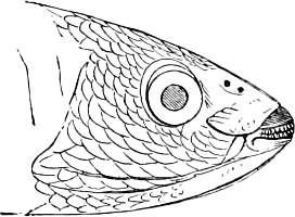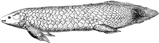 [7] The Ganoids formed at former epochs the largest and most important order of fishes, many of the fossil forms being known from very imperfect remains only. It is quite possible that not a few of the latter, in which nothing whatever of the (probably very soft) endoskeleton has been preserved, should have to be assigned to some other order lower in the scale of organisation than the Ganoids (for instance, the Cephalaspidæ).
