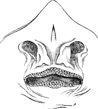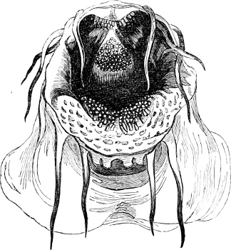 [47] Fig. 317 is taken from a specimen in which the horny covers of the dentition were lost, hence it does not represent accurately the shape of the teeth.