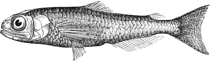 Fig. 321.—Scopelus boops, a pelagic fish, with luminous organs.