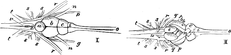 [9] Stannius (pp. 60, 65) doubts the pure origin of these two bones from membranous tissue, and is inclined to consider them as “the extreme end of the abortive axial system.”