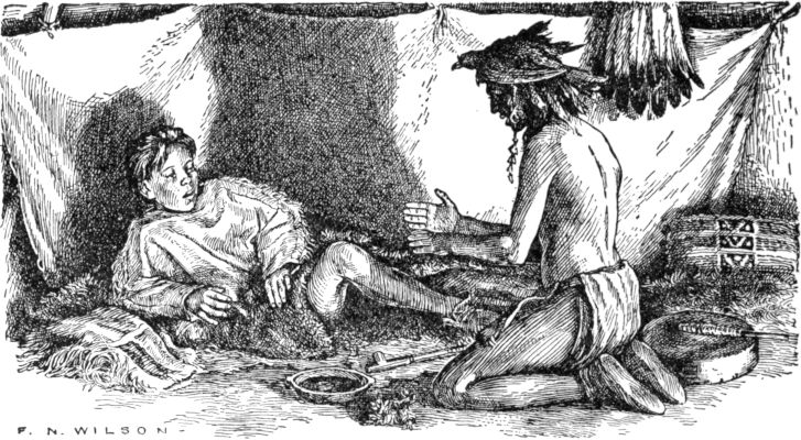 | Indian chiefs confer as to what shall be done with the white boy | ||