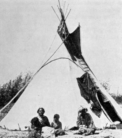 Tepee (tē′pe͞e, also tĭ′pĭ). Name applied to cone-shaped tent used by Western Indian tribes. Made in earlier days of buffalo robes or elk skins; now made of canvas.