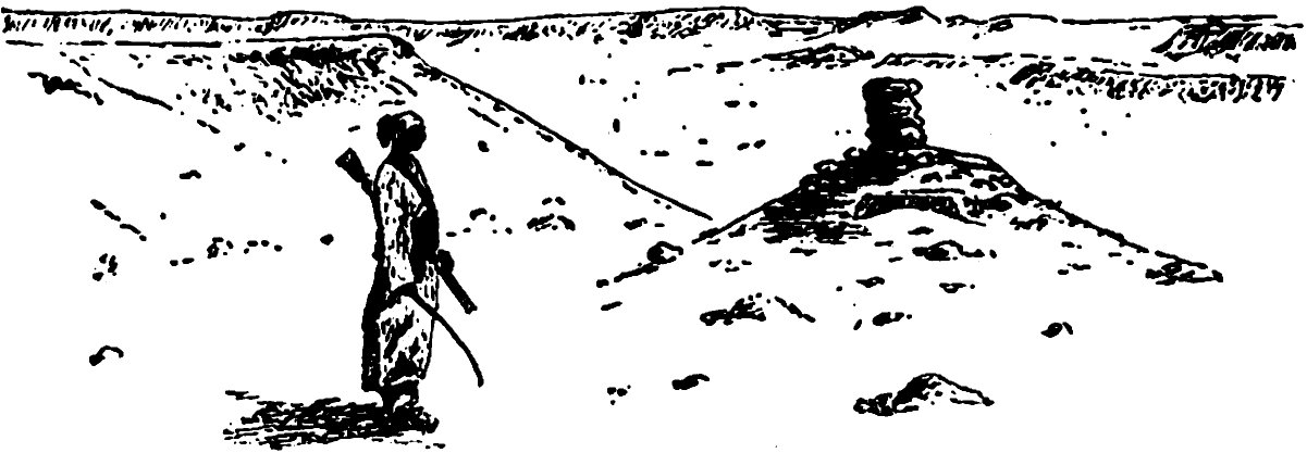 The names by which the new places that we found in the central part of the desert are called will not be seen on any map. They are only those given to them by my men. But it has been necessary to use them in order to avoid repetition of such cumbersome phrases as “the-hill-that-appeared-to-alternately-recede-and-advance-as-we-approached-it,”[10] etc.