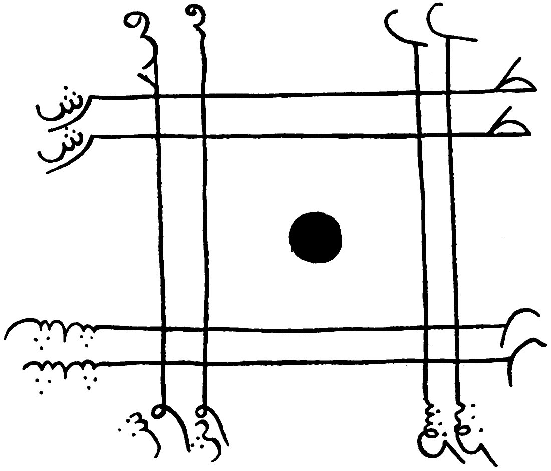 Many of the other marks shown in the plates are probably derived from these wasms. The bedawin Arabs are nearly always illiterate, but are accustomed to communicate with each other by marks scratched on the ground in the same way that gypsies make use of a “patteran.” See p. 180 ante.