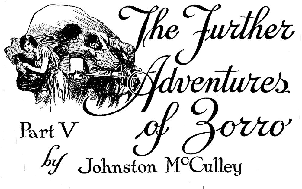 “Yet, I am not sorry for what has happened,” said Señor Zorro. “It has brought us closer together. Peril knits hearts, señorita.”