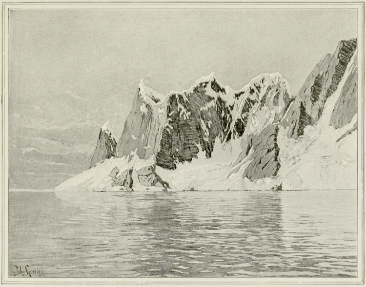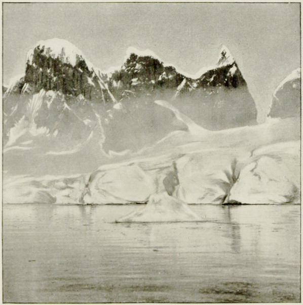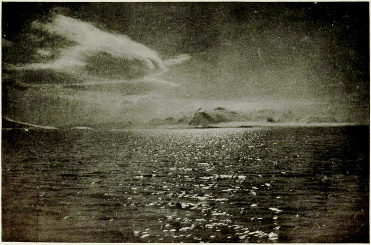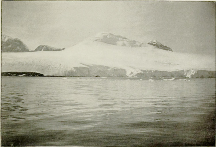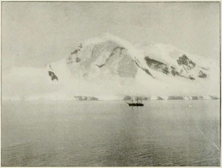 The Belgica left Antwerp at the end of August, 1897. She steamed and sailed down the Atlantic to Madeira, then across to Rio de Janeiro, down to Montevideo, and into the Strait of Magellan to Punta Arenas. After spending some time in the Fuegian channels and among the Cape Horn Indian tribes, we took our departure from the known world, at Staten Island on January 13, 1898. We sighted the South Shetland Islands a week later, where, during a violent tempest, we lost by an accidental fall overboard, the young and faithful Norwegian sailor, Wiencke. We next crossed the ever-foggy and ever-tempestuous waters of Bransfield Strait, and on the afternoon of January 23, 1898, came in sight of the outer fringe of a new land, the Palmer Archipelago. Entering this, we discovered a new highway, which in size compares favourably with Magellan Strait. To the east and west of this strait, we charted about five hundred miles of a land which had never before been seen by human eyes—part of a great continental mass which probably surrounds the south pole. It is buried even in midsummer under a ponderous weight of perennial ice. Passing out of the strait, we entered the South Pacific, and after skirting the western border of Grahamland to Adelaide Island and then to Alexander Island, we attempted to enter the main body of the pack-ice westward.