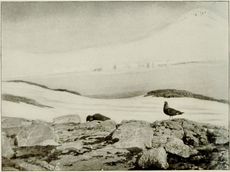 The illustrations in this book are made, with but a few exceptions, from photographs, and since these are the first photographic reproductions of antarctic life and scenes, it is hoped that they will be of value as records of the unknown south. In the color plates we have aimed to give a few examples of the daily touches of colour, which serve to relieve the awful monotony and glittering whiteness peculiar to the south polar regions. The vivid complexity of delicate shades of most scenes is impossible of imitation by the present means of the printer’s art, but the success attained by the artist, the engraver, and the printer in these reproductions has been an agreeable surprise to me.