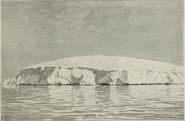 Before passing from the known to the possibilities of the unknown, I will answer the business man’s question: “To whom do these lands belong?” It seems to me that the nations seeking to divide China and Africa might turn their ambitions briefly towards the antarctic. Here are millions of square miles which belong to nobody; at least, there are no valid claims filed, except those which accrue from the right of discovery. Victorialand would seem to belong to England, but it is possible for the United States to lay a strong claim by right of extension of territory. Wilkes, the American explorer, was the first to see and to chart the great masses of land of which Victorialand is a part. The work of Ross, though better in quality, is supplementary to that of Wilkes, which gives the United States a priority claim. There is also a small French claim. There is indeed room for a future boundary dispute of the limits and claims of the Americans, English, and French in Wilkesland. The British Government seems to have no doubt on this question, for twelve years ago the Queen issued a grant for Possession Island, making Mr. Albert McCormick Davis, of Montreal, colonial governor of its numerous cities of penguins, and giving him for a stipulated period a monopoly of its guano-beds. Mr. Davis never rose to the dignity of being the first south polar king. He was content with the honours of appointment, and returned his credentials three months after their issue.