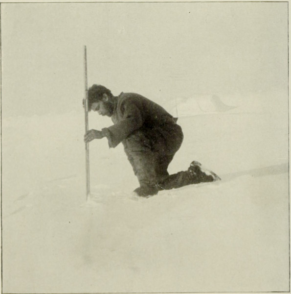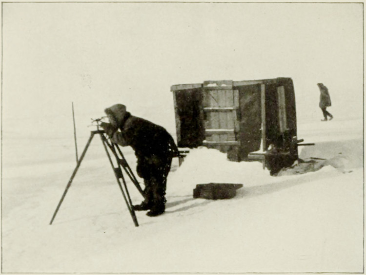 The interior south polar lands are likely to prove the coldest part of the earth. This is contrary to what might be expected, because the great circular sea which surrounds the entire globe should warm the comparatively small expanse of land. In the region of the Belgica’s drift, however, the indications were otherwise. Our position was in a restless sea of ice, far from land, with large open lanes of water constantly about us. It follows, then, that we should have had a mild marine climate. But our temperatures were persistently low, from -5° to -45° C., rarely above the freezing-point. And, following southerly winds, the mercury at once sank into the bulb. The suddenness and intensity of cold which came with interior winds bespeaks a very high and a very cold area. This question and a hundred others will be solved by meteorological studies. Problems of weather are associated with neighbouring phenomena. For the proper understanding of the climate of the southern hemisphere there is necessary a long-continued series of meteorological studies within the limits of perpetual ice.