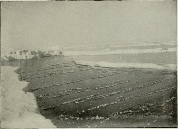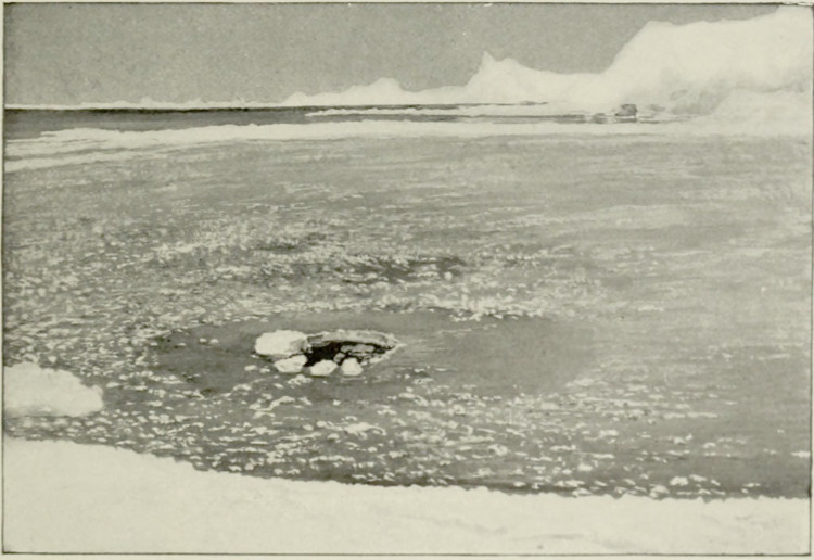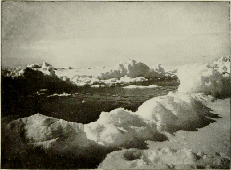It was a north-easterly gale that, on the 28th of February, 1898, forced us through the ice. Comparing this ice with that which I came across on my sealing expeditions in the arctic seas on the eastern coast of Greenland, the difference was at once apparent. While we find in the arctic ice channels and lakes several miles in length, formed by the rapid currents prevailing there, in the antarctic ice we do not find any signs of similar formations. The spaces which we found here were intermediate spaces between each separate floe of ice, broken up by the storm and carried away from its original position.