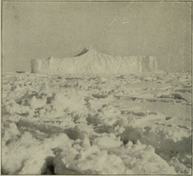 Following the polar circle from Grahamland eastward, the next land is Enderbyland. Ten degrees farther another line is put down and named Kempland. Enderbyland was reported by Captain Biscoe in 1831. The pack-ice was so closely set around the land that Biscoe was not able to debark or approach within twenty-five miles. So far as we know, he saw but one headland to distinguish the land from an iceberg.
