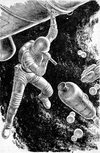 Blane felt his fist move from his hip before he realized what he planned. It was an awkward blow, as all activity in nearly zero gravity must be, but it connected. Devlin was lifted from his weak contact with the floor and his head banged savagely against the roof. He drifted back toward the deck, unconscious. Blane caught himself and dashed for the elevator. There was still time to broadcast the facts to the station and to stop the men from entering the bomb bay. After that, he no longer cared what happened to him.
