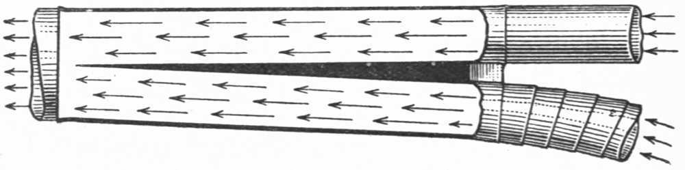 If the air pipe is too small the air will bubble slowly through the water, while if it is too large it will blow out with great force, spraying and losing the water: the ratio between the cross-sectional area of the air and water pipes is about 1½ to 4.