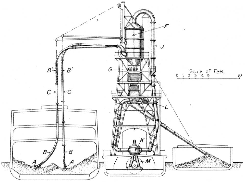 No attempt has been made to go fully into the questions of domestic vacuum cleaners, removing dust from manufacturing processes, etc. The chief aim has been rather to bring into prominence the flexibility and other advantages of moving air as a means of conveying and elevating heavy solid materials which hitherto it has been thought could not be handled in this manner.