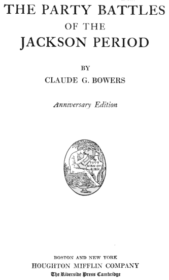 This is the hundredth anniversary of the memorable campaign which marked the rising of the people and the election of Andrew Jackson to the Presidency, and it has been thought appropriate to issue an Anniversary edition of “Party Battles of the Jackson Period” uniform with “Jefferson and Hamilton.”