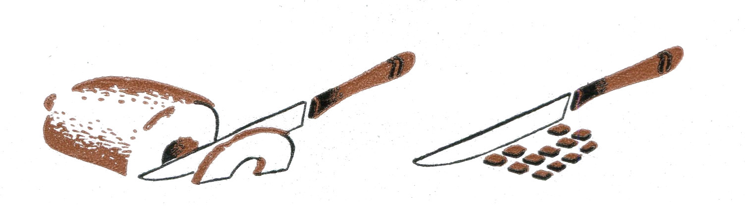| Cut up dates and other sticky fruits with wet scissors. Dip scissors in water occasionally. | Snip through long shreds of coconut with scissors to shorten them. The shorter shreds blend into doughs more evenly. | To tint shredded coconut: Soak it in milk or water (¼ cup for ½ cup coconut) with a few drops of food coloring added. Drain, dry on absorbent paper. |