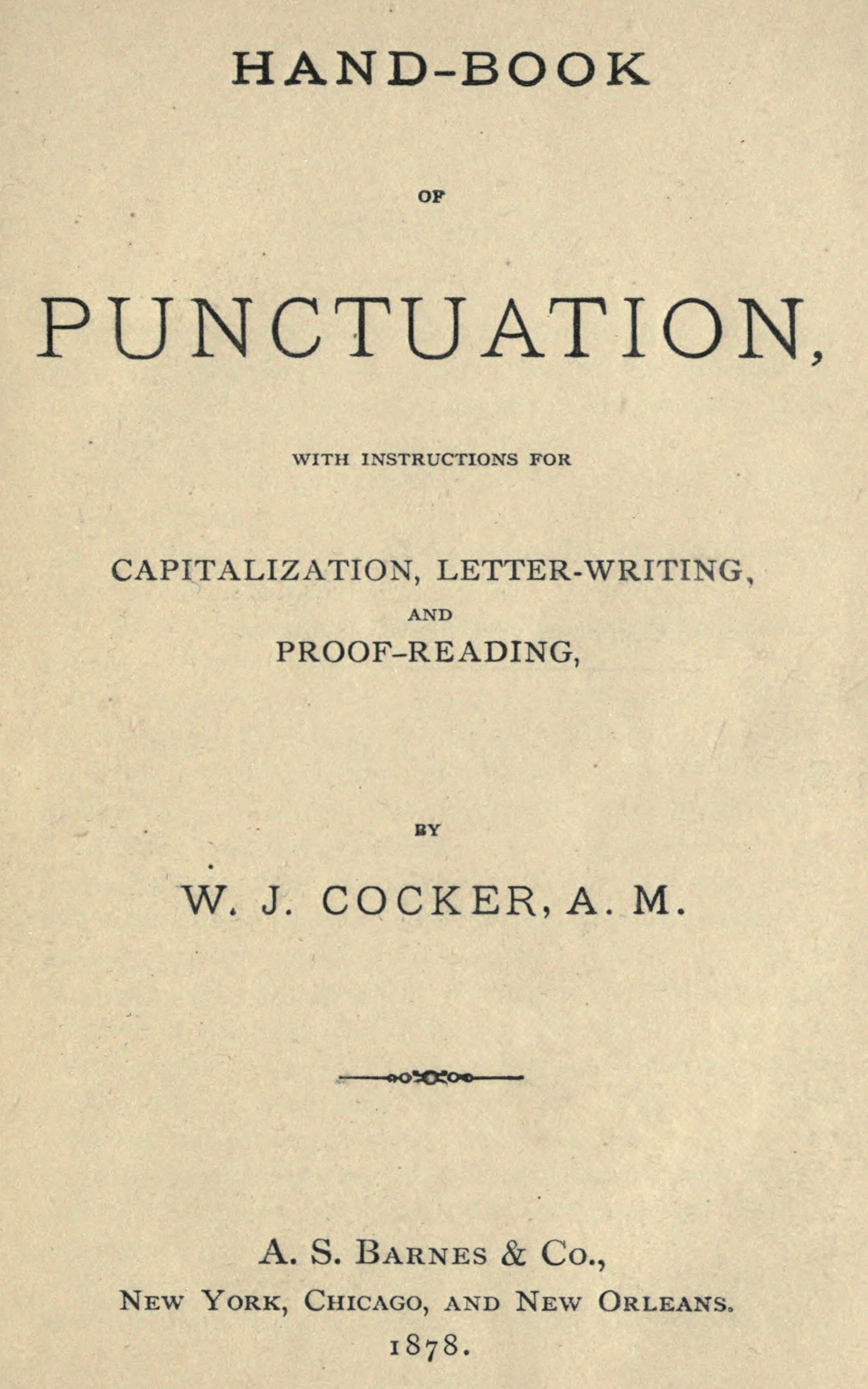 In the preparation of this hand-book, the author is under obligations to various authorities, but he is more especially indebted to Wilson’s “Treatise on Punctuation.”