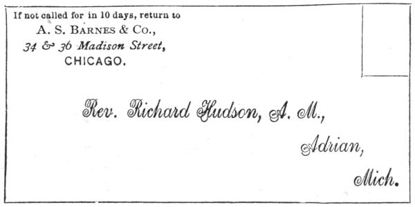 We would suggest that this hand-book be used at Rhetorical Exercises, and that when essays, orations, criticisms, &c., are handed to the teacher for correction, he should use a red or a blue pencil, so that corrections may be the more readily recognized. Besides the corrections in grammar, spelling, &c., he should be careful to supply punctuation marks when needed, cross out needless ones, and, of course, make such other corrections as may be necessary. When the productions are returned to the pupils, the teacher should first point out the necessity of using certain marks, in order to define[v] and bring out the meaning, and to show the relation between the different members of a sentence. Having thus shown the need of punctuation marks, then reference should be made to some of the simpler rules, to impress this need on the mind. Great care should be taken not to perplex the mind with too many rules before the necessity is created for their use. The great difficulty in the study of punctuation has been that many rules are committed to memory before the need of their use has arisen, so that the mind is perplexed and bewildered instead of enlightened. The rule, it must be remembered, does not create the necessity; the necessity creates the rule. Then, again, we think a great mistake is made by having the beginner punctuate what some one else has written. The better plan is for the pupil, at the very outset, to punctuate what he himself has composed, and in his effort to bring out his own meaning clearly, he will, with the aid of a few rules, almost intuitively fall into the habit of punctuating correctly.