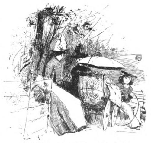 But more observers’ eyes, probably, are turned upon the driveways and their wonderful parade of vehicles than upon the panorama of wood and meadow. Such a sight as the wheeled procession that pours through the entrance at Fifty Ninth Street and Fifth Avenue cannot be found elsewhere in America, and is indeed only matched by the displays of Rotten Row and the Champs Elysées. Other American cities admittedly look to New York as their leader and mentor in the matter of fine horseflesh and smart equipages. The very latest and handsomest products of the carriage builders’ skill are here to be seen whirling along behind teams whose value represents a small fortune. There comes the banker’s victoria, drawn by a pair of horses whose clock-like gait and well fed aspect of sleekness show that they appreciate their position in the establishment to which they belong. Behind this comes a trim, light phaeton; then a family party in a barouche; these predominating types of vehicle being interspersed with the tall and ostentatious four in hand, the more unconventional buckboard, the natty dogcart, and the[9] democratic park coach, whose passengers take in all the beauties of the scene at twenty five cents a trip.