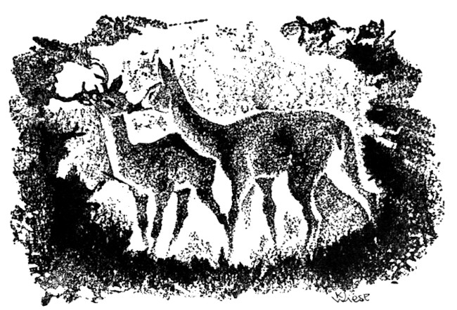 The old stag was there before him. He had not lain down yet, but was standing beside the fallen beech trunk expectantly.
