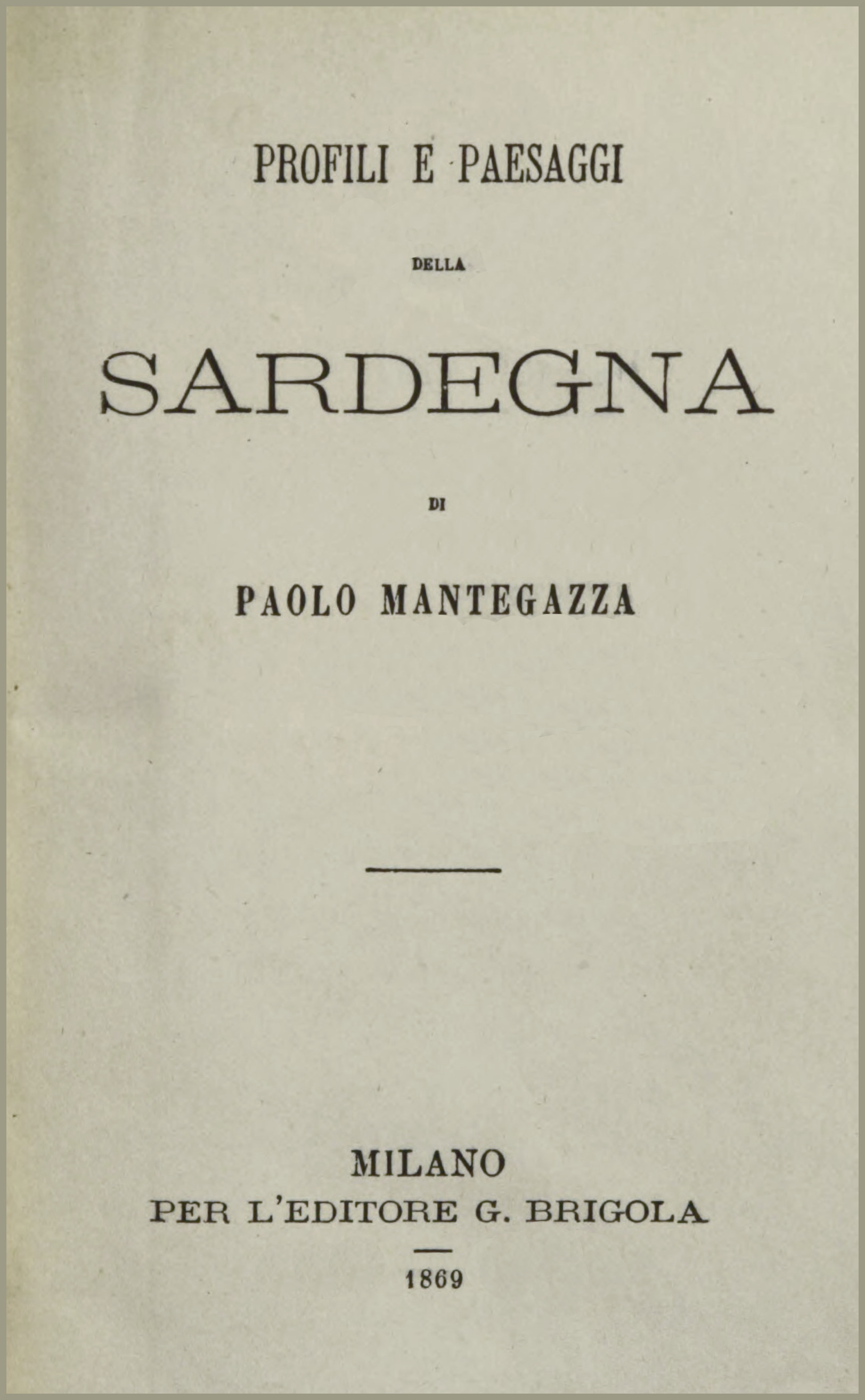 Amando il vero più che il brevetto d’invenzione, io godrò assai di ripetere sulla Sardegna cose già dette da altri; ma ad un patto solo, ch’io sia riuscito cioè a farvi amare un’isola bellissima e infelicissima, che noi altri italiani abbiamo il torto di dimenticar troppo e di amar troppo poco.