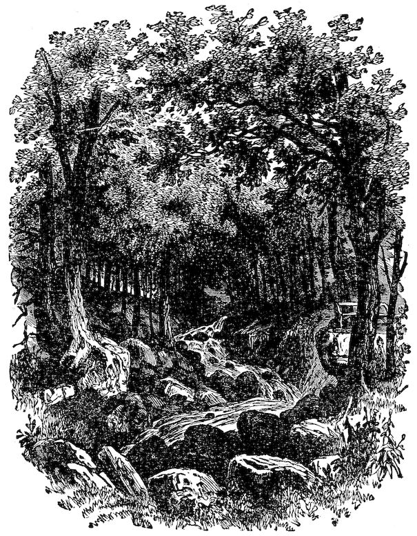 In a dense pine wood we observe certain peculiarities of light and shade seldom seen in a deciduous wood. The foliage that forms the canopy over our heads is so closely woven, that, wherever an opening occurs, the light pours into it with distinct outlines of shadow, very much as it shines into a dark room through a half-opened shutter. These sudden gleams of light, blending with the all-pervading shadow in which we are involved, deepen all our sensations, and cause us to feel a little of that religious awe which is inspired when passing under the interior arches of a cathedral. The presence of a group of deciduous trees always becomes apparent at 284some distance before we reach it, by the flickering lights among their loose foliage, and a general brightness and cheerfulness in the space occupied by the group.