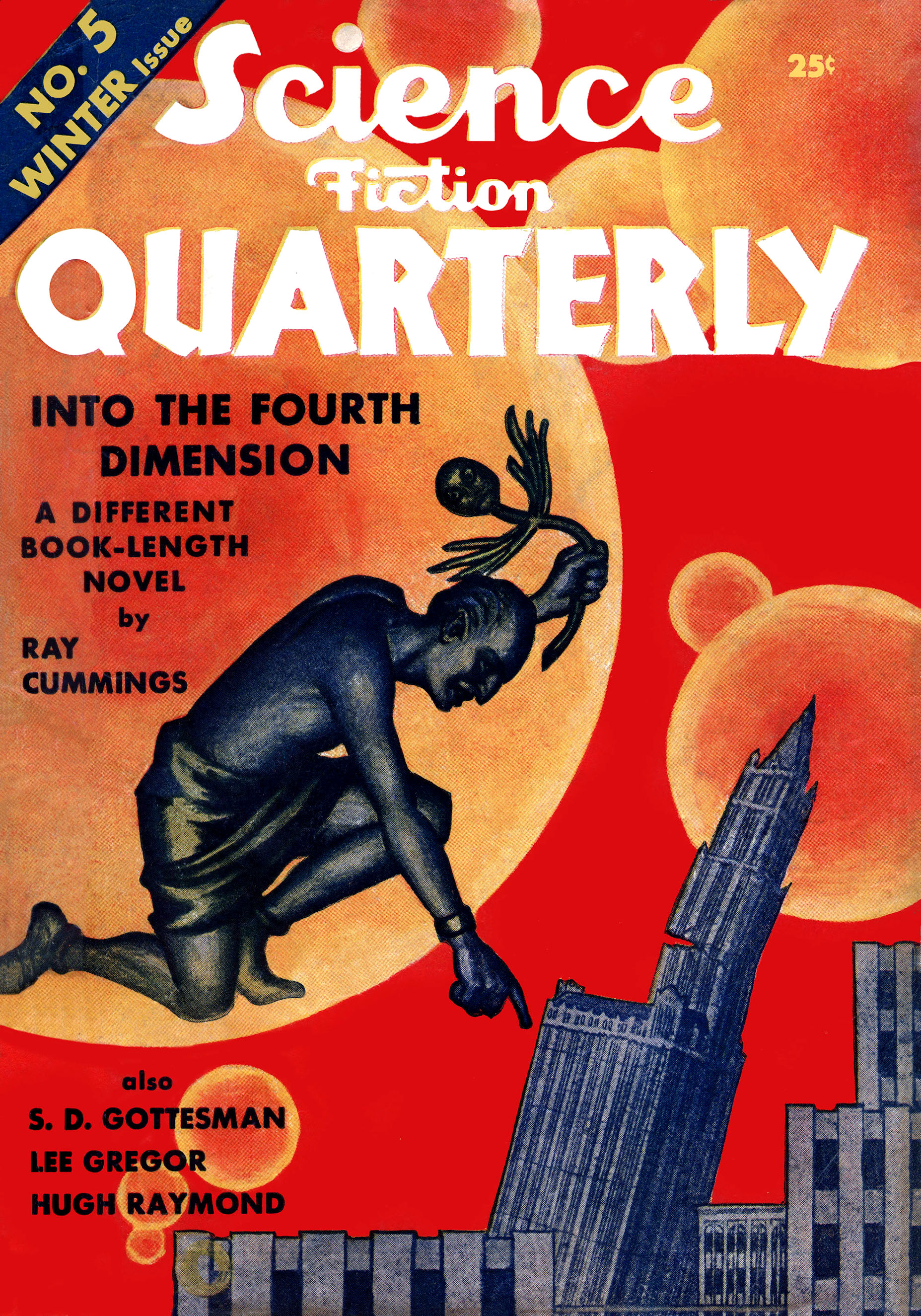At my puzzled look he smiled. "I'd better not question you, Rob, but you won't find me hard to understand. A point—an infinitesimal point in space—has no dimension. It has only location. That's clear, isn't it? A line has one dimension—length. A plane surface has length and breadth; a cube, length, breadth and thickness. The world of the cube, Rob, is the world we think we live in—the world of three dimensions. You've heard of that intangible something they call the fourth dimension? We think it does not concern us—but it does. We ourselves have four dimensions. We are the world of the fourth dimension. But the fourth is not so readily understood as the other three."
