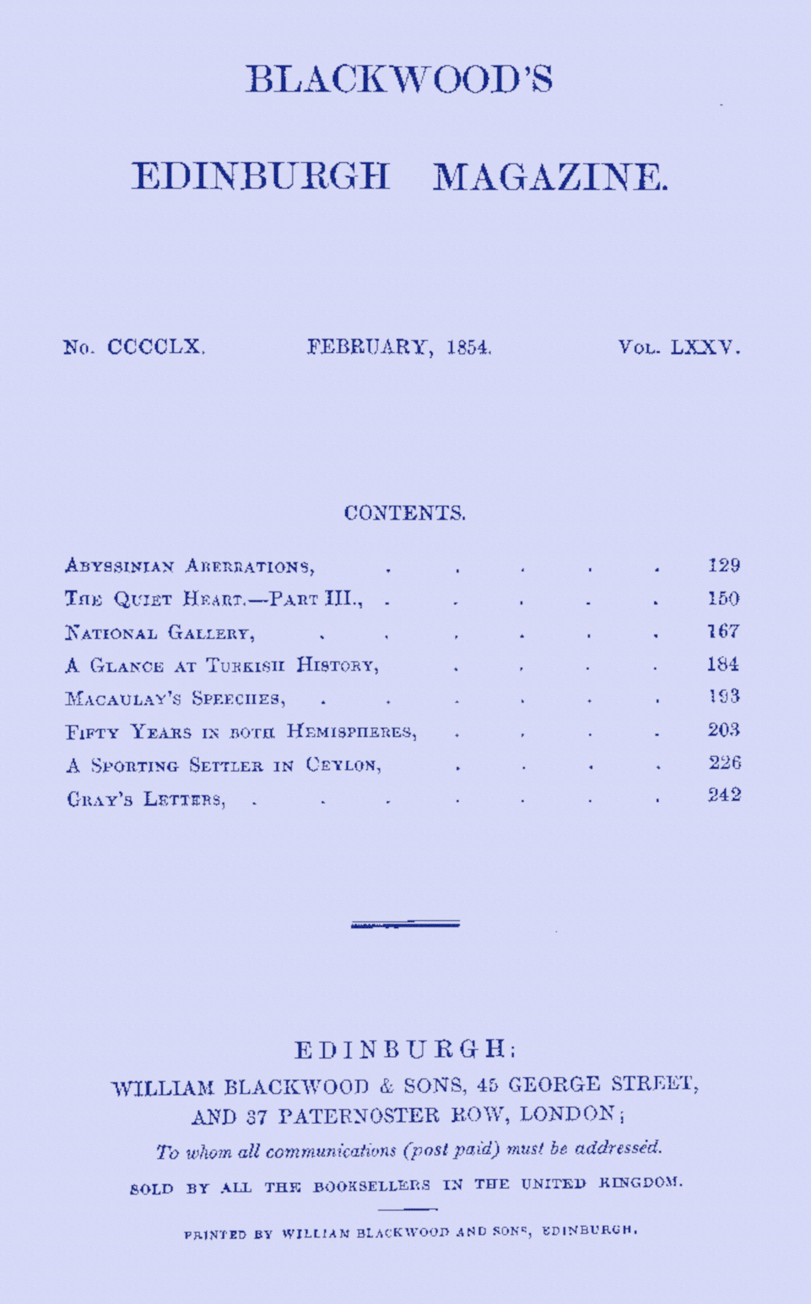 Title: Blackwood's Edinburgh Magazine, Vol. 75, No. 460, February, 1854