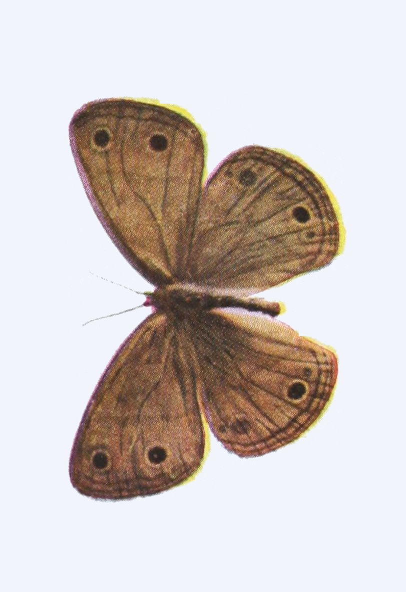 The wings consist of a framework of horny tubes which are in reality double, the inner tube being filled with air, the outer tube with blood. The blood of insects is not, like that of vertebrates, red in color. It is almost colorless, or at most slightly stained with yellow. The circulation of the blood in the outer wall of the wing-tubes takes place most freely during the brief period in which the insect is expanding its wings after emergence from the chrysalis, concerning which we shall have more to say elsewhere. After the wings of the butterfly have become fully expanded, the circulation of the blood in the wings ceases almost entirely. The horny tubes, which compose the framework of the wings of butterflies, support between them a delicate membrane, to which upon both the upper and lower sides are attached the scales. The two fore wings are more or less triangular in outline; the hind wings are also subtriangular, but are generally more or less rounded on the outer margin, and in numerous forms are provided with tails or tail-like prolongations.