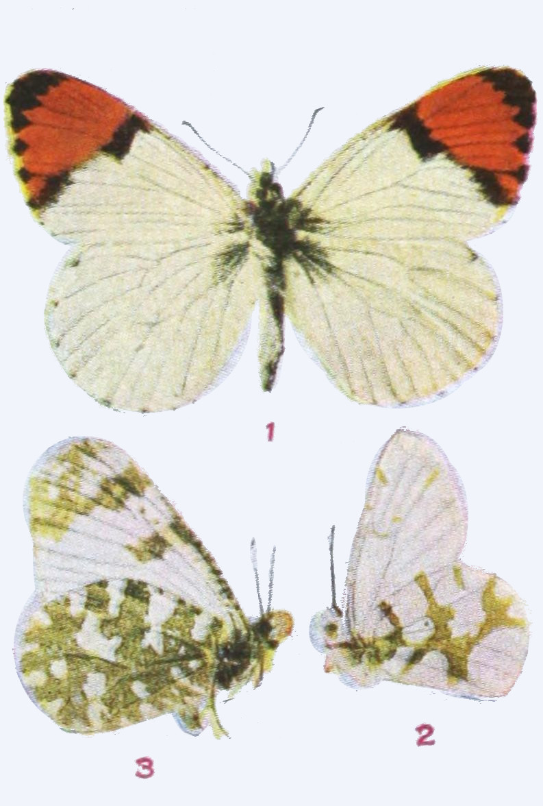 The eggs of butterflies are beautiful objects when examined under a glass. They have various forms. Some are spheres or half spheres, some are conical, cylindrical or spindle-shaped, others are flat and resemble little cheeses, and still others have the form of turbans. There is endless variety of form displayed within certain limits. Their surfaces may be quite smooth or they may be adorned with raised ribs and sculpturings (see Plate C, Figs. f and g) or marked with little pittings or depressions arranged in geometrical patterns. They vary in color. Some are white, some pale green, or blue-green; others are yellow, orange, red, or purple. They are often spotted and marbled like the eggs of some birds.