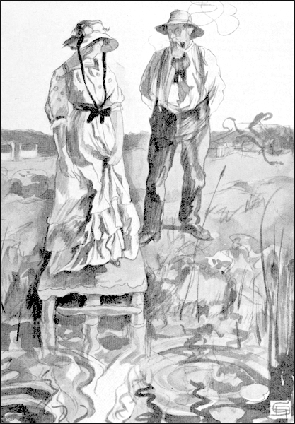 Le grand chapeau à coque de pavot vint à passer comme il coiffait de ses pots de terre ses derniers repiquages. Il l’avait vu sortir de la Truite d’or à trotte-menu, en vrai chapeau de paille qui ne tient à la tête que par une épingle et ne demande pas mieux que de s’envoler. Depuis l’autre semaine, on l’apercevait partout, rond et clair comme un hélianthe. Il grimpait les routes, filait sous bois, passait l’eau en barque, siestait dans l’île à l’ombre des peupliers. C’était un chapeau mutin, indiscipliné, tout à fait en vacances. M. Fauche maintenant savait à peu près la couleur des yeux qui étaient dessous, des yeux marron à petits semis d’or comme les cailloux rouilleux de l’eau, au passage des truites.
