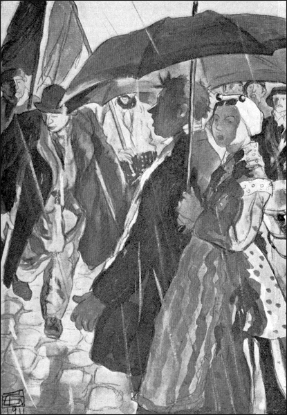 Roselei fut bien étonnée d’apprendre ainsi qu’elle allait avoir un mari avant de savoir de quelle nuance d’attachement il lui serait donné de l’aimer. Elle passa la bride de sa jument, sauta en selle et d’un trait galopa jusqu’aux Six jeunes hommes. Du dehors elle appela:
