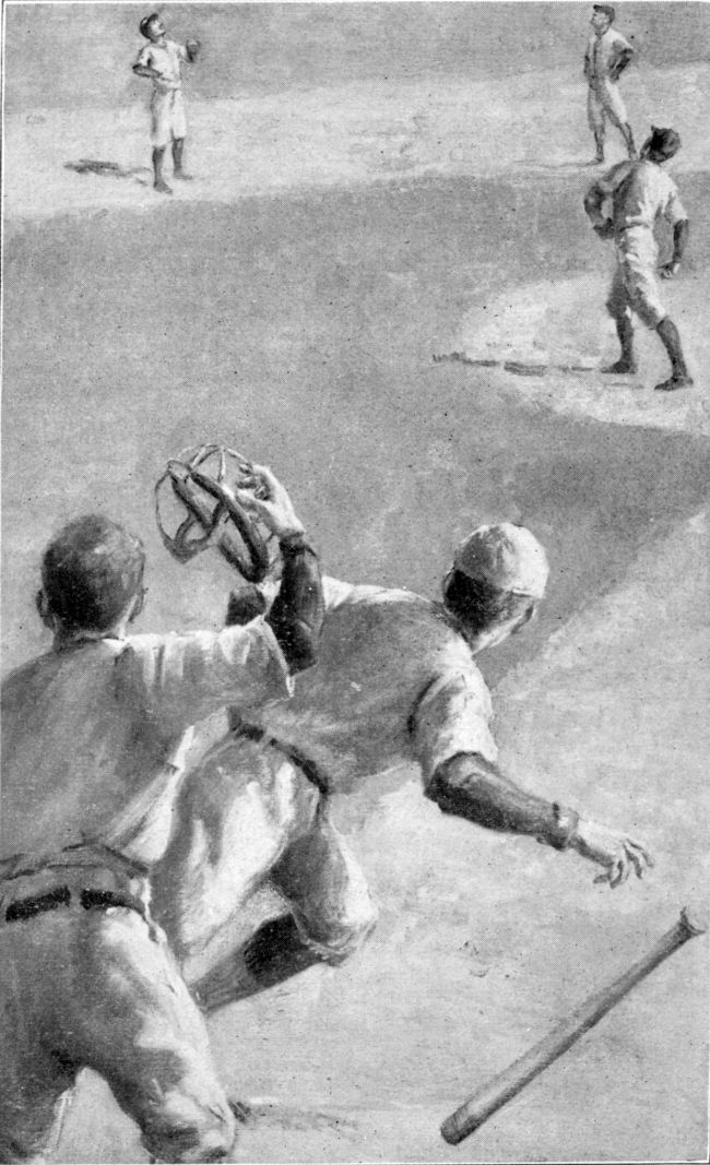 Down went the ball on where Joe’s body ought to have been. But it was not there. Joe was halfway down the stretch toward home, going like the wind.