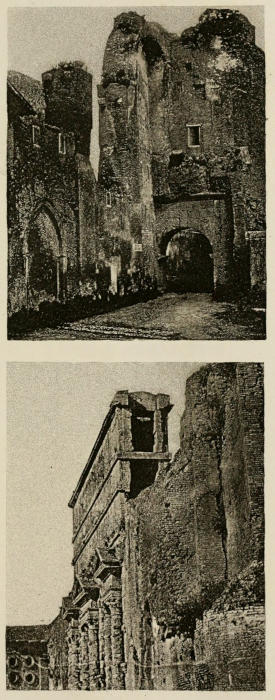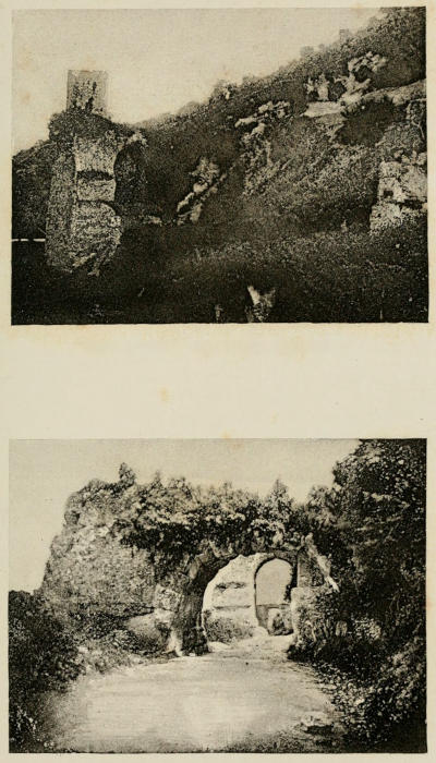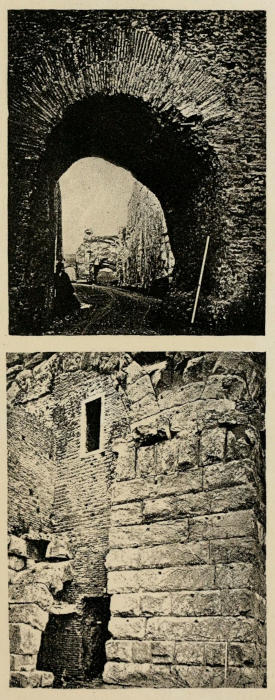 [195] The two arches of the Porta Metronia remain, both built of brick of the time of Aurelian. The outer arch is visible in the city wall; the inner one is concealed by a medieval tower built up against it. In the year 1871, Signor Rosa made a new gate on the east side of the Porta Metronia for his carts to pass through, in which the earth, excavated from the Palatine, is carried out into the meadow beyond, outside of the walls. This is certainly better than continuing to fill up the valley between the Aventine and the Pseudo-Aventine, and thereby concealing more of the Wall of the Kings under S. Balbina and burying more of the Aqua Appia, than has already been done under his orders.