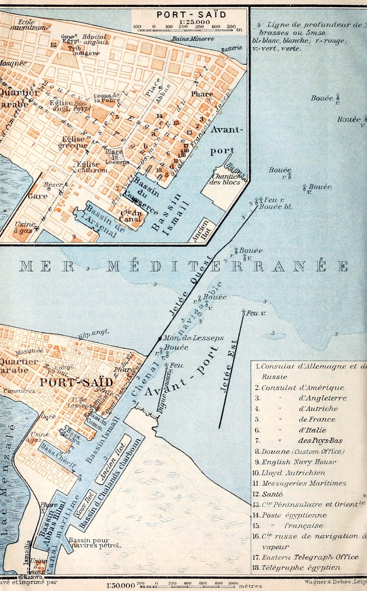 Opposite the New Mole (Pl. E, 4) is a massive Flight of Granite Steps (193 in number) ascending to the level of the town. It is adjoined by a wire-rope elevator (3 or 2 cop.).