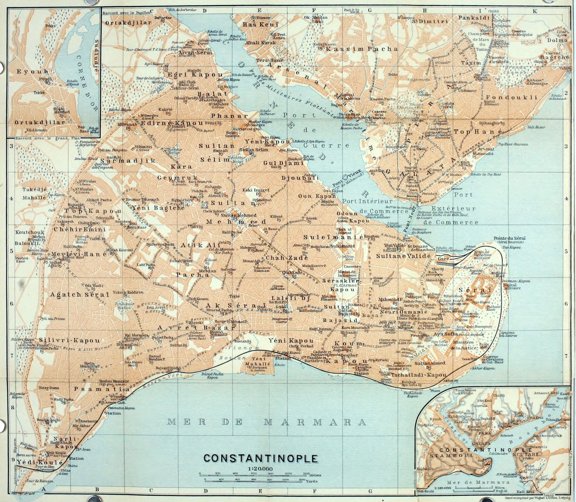 Near the Aï Yaneh Church (Pl. 5; B, 1), to the S. of the Bazaars, we leave behind us the Usun Sokak and pass over a Viaduct (fine view) leading to the old Castle Hill, rising between the two ravines of the Kuzgun Deresí and the Iskeleboz Deresí. This is now occupied by the Turkish town proper and contains the ruins of the Byzantine Town Walls.