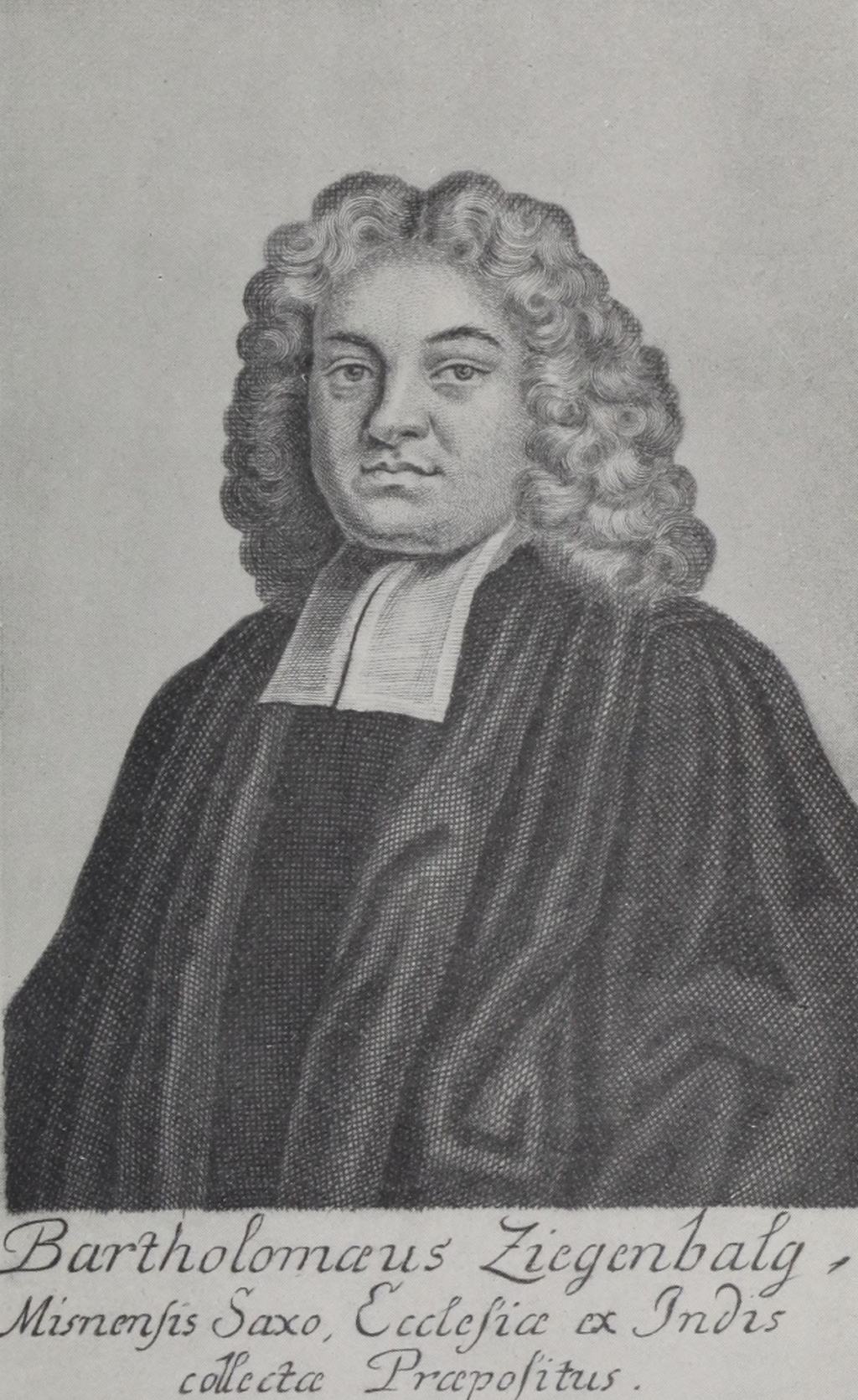 In the little town of Pulsnitz in Lusatia was a youth named Bartholomew Ziegenbalg, who was born on 24th June, 1683. The fatherless boy, who had lost his mother a few years before, recalled her words about gathered[Pg 17] treasure: “Seek it in your Bible, my dear children, you will find it there, for I have watered every leaf with my prayers.” His studies were in the direction of a ministerial career, which he felt God had placed before him, but his weak health and lack of means were hindrances to this. Through the kindness of friends, however, he was able to study at Halle under the direction of Professor A. H. Francke, and eventually he was discovered by Dr. Lütkens and, with his friend Henry Plütschau, was appointed to go to India. He set sail on the 29th November, 1705. He left behind many friends who wished him God-speed, but not a few, of little faith and equal grace of soul, sneered at his zeal and predicted nothing but failure and shame.