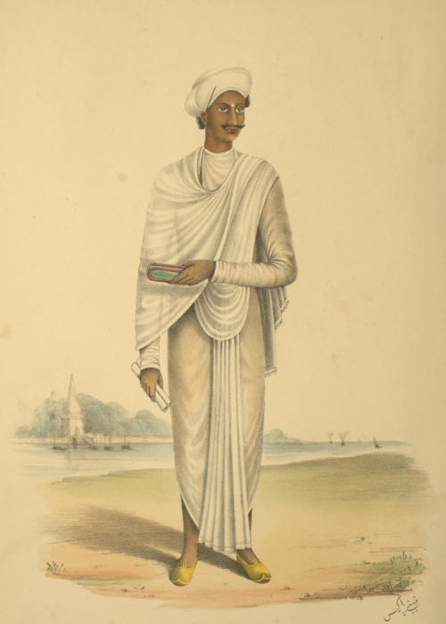 “Sri” is written at the top of all Hindi writings; the meaning of the word is “prosperity;” it is put as a title of respect before proper names; frequently they write the same word twice over (“Sri, Sri,”)—or they write “Sri Gănésh.” The Muhammadans, in a similar manner, dedicate their writings to God by a character on the first page, which, as in short-hand writing, implies a whole sentence.