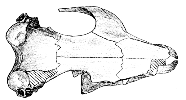 The skull of Pyrotherium sorondoi Ameghino. ⅛ natural size.