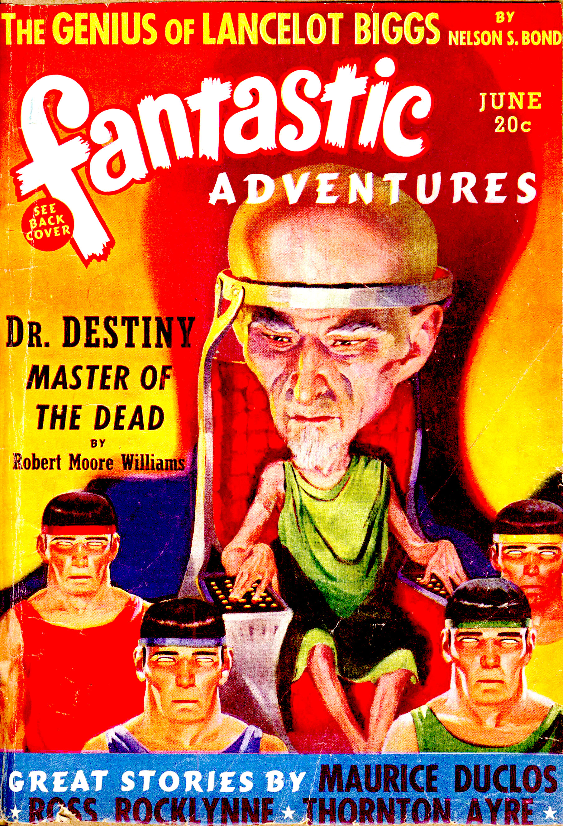 "Thaxton was a hyper-thyroid. The bulging brow, the pop-eyes, the nervousness—all these indicated that. And I remembered, too, the curious fact discovered by an early experimenter in telepathy that the 'esper', while working at his trade, is wide open to hypnosis.