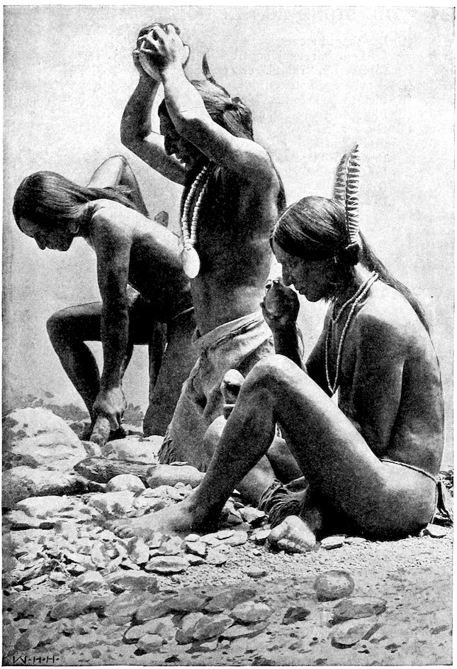 439“Personally, I have no doubt that these stones were objects of utility designed for several practical services in the economy of the Californian aborigines. In the course of time, by a process of evolution readily suggesting itself, a few of them, like the arrow and the pestle, passed from the sphere of utility into that of veneration and ceremony. Any one knowing the Indian character intimately will appreciate the ease with which such a change could be wrought. I but lately witnessed an illustration parallel. I was in attendance upon a ceremonial gathering that continued through five days and nights. The native game called ‘hand-game’ or ‘guessing-game’ was played. Before the game began, I bargained with a young Indian for his set of game-bones, to be delivered at the close of the game. The bones had never been used. The play continued for two days, and the team represented by this Indian won everything the opposition could put up. The time of adjournment had not been reached, but wishing to close my bargain, I offered the man the sum agreed upon. This he refused, and with many and earnest words explained that the bones were ‘good medicine’ and ‘lucky’; that he had never done so well before. If he sold them he could never get such lucky ones again, etc. After much talk he proposed to let me have them for twice the sum agreed upon. I declined, though I really intended to take them. I imagined I would lose nothing by delay. In the meantime a company of Pah-Utes came in and joined the losers. A stake was raised and a new game started, the Pah-Utes using their own songs and changing them often for ‘luck.’ But after six hours they were wholly defeated, losing everything to the same set of bones. After a while I hunted up my Indian and reopened negotiations for the bones. After beating about the bush I offered him his price. To my chagrin he refused the sum and would not listen to any offer. I was given to understand that no Indian could sell such lucky bones. I then called other Indians to my aid, men who had refused me nothing I was willing to pay for, but they gravely repeated the saying that the bones were ‘lucky’ and ‘good medicine’; that they could never be replaced, and it was useless to talk about buying them. Now any one can see how a few more successes with these bones would place them in the sphere of veneration. Any one having them in his possession would be considered an invincible player. Ultimately they would pass from the sphere of utility into that of superstition and become ‘charms.’