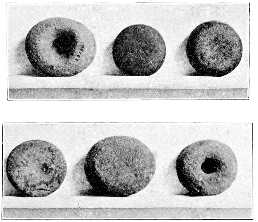 Certain specimens in Figs. 389 and 391 have a second small but prominent depression exactly in the centre. Usually about this depression is a little rim.
