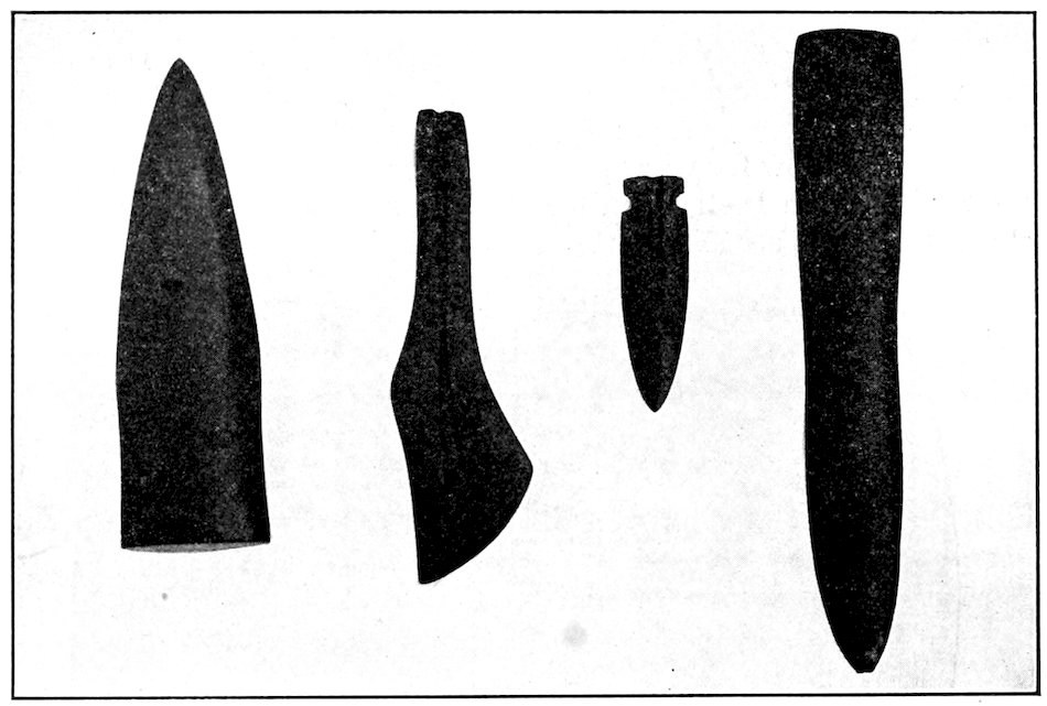 I am under obligations to the Wisconsin Archæological Society for the loan of plates illustrating specimens in its collection, and to Mr. George A. West, the authority on Wisconsin pipes, for the loan of figures illustrating pipes from the Northwest; and, further, to Mr. West for his kindness in reading my chapter on pipes and offering suggestions. The Directors of the Milwaukee Public Museum have my thanks for their generous action in making, especially for “The Stone Age,” a series of plates illustrating type-specimens in copper on exhibition in their collection. Dr. S. A. Barrett, Curator of Anthropology in the Milwaukee Public Museum, also rendered me assistance.