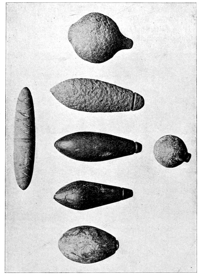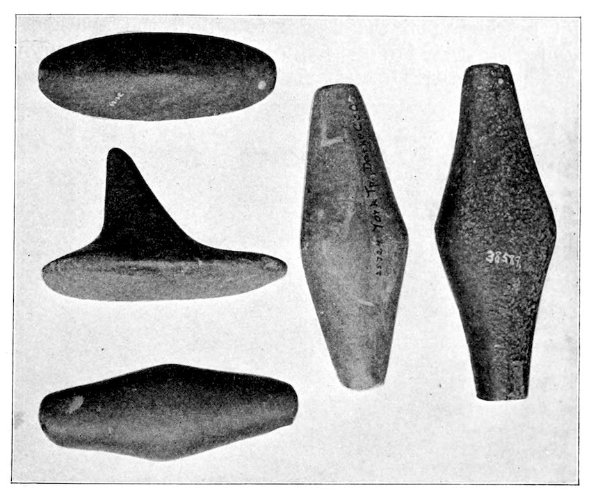 Regarding these numerous plummets and kindred shaped stones so common on the Pacific Coast, not a little has been written, as reference to the Bibliography will prove. Rev. H. C. Meredith[43] once wrote for me a page concerning these strange objects. As it is concise and to the point and as good as anything I have seen in print, I reproduce it here: